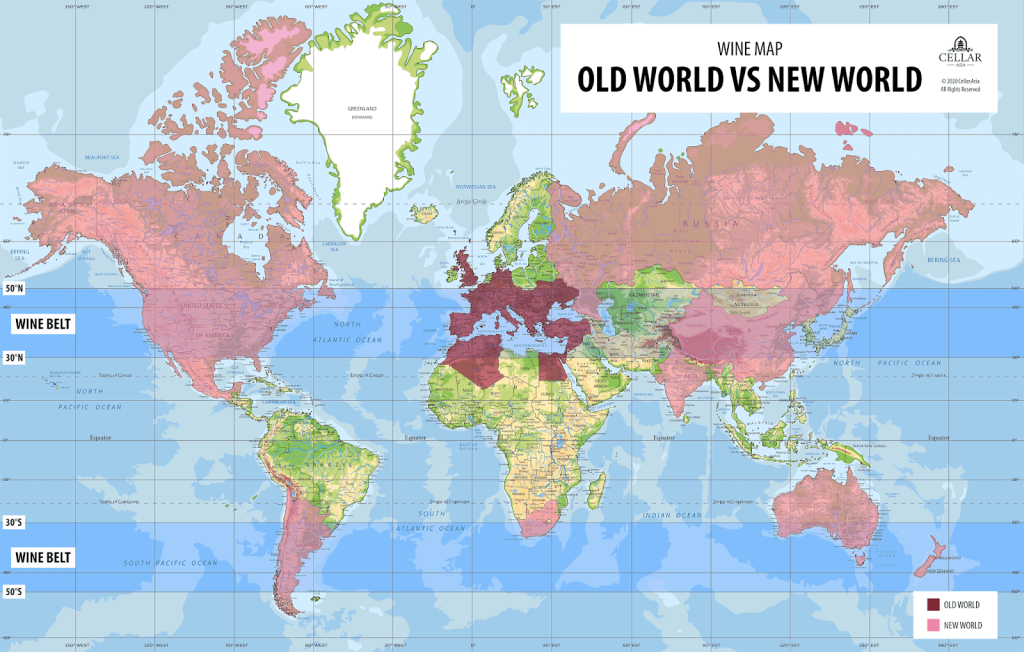 The world of wine is vast, encompassing over 4,000 grape varieties in 70+ countries. This size and scope is difficult to grasp on the whole. Dividing it into more digestible chunks is a useful path to understanding. One of the most common divisions is Old World / New World. As the names imply, this is a classification with its origin in the chronological history of grape-growing and winemaking. However, the distinctions do not stop there. Climate, culture, geography, and labeling are involved as well. This guide will unpack each individually and discuss how they overlap and intertwine. Bridging the old/new divide is your passport to the entire world of wine, leading to increased confidence when selecting & buying and heightened drinking enjoyment.